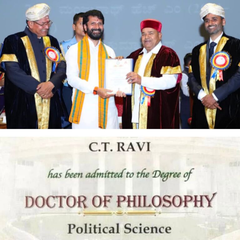 ಅವಿನ್ ಟಿವಿ ಸುದ್ದಿಜಾಲ ✒️: ಮಾಜಿ ಮಂತ್ರಿ, ಹಾಲಿ ವಿಧಾನ ಪರಿಷತ್ತು ಸದಸ್ಯರಾಗಿರುವ ಸಿ ಟಿ ರವಿಗೆ ಪಿಎಚ್ಡಿ ಪದವಿ ಪ್ರಧಾನ. ಚಿಕ್ಕಮಗಳೂರು ಜ 31: ಪ್ರಾರ್ಥಮಿಕ,ಪ್ರೌಢಶಾಲೆ,ಕಾಲೇಜು...